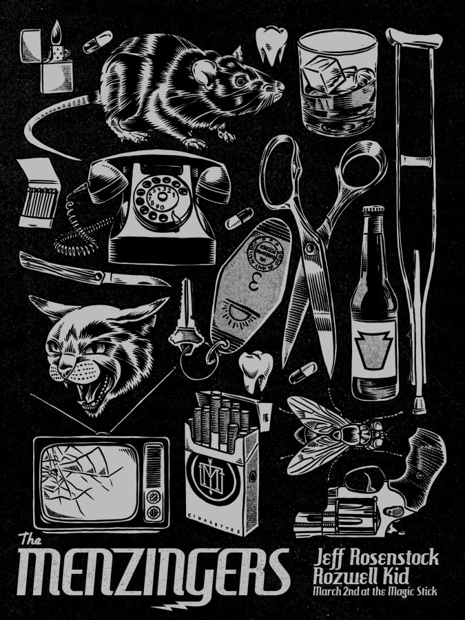 18x24 screen printed poster for the menzingers and jeff rosenstock super sparkly silver metallic flake on black paper