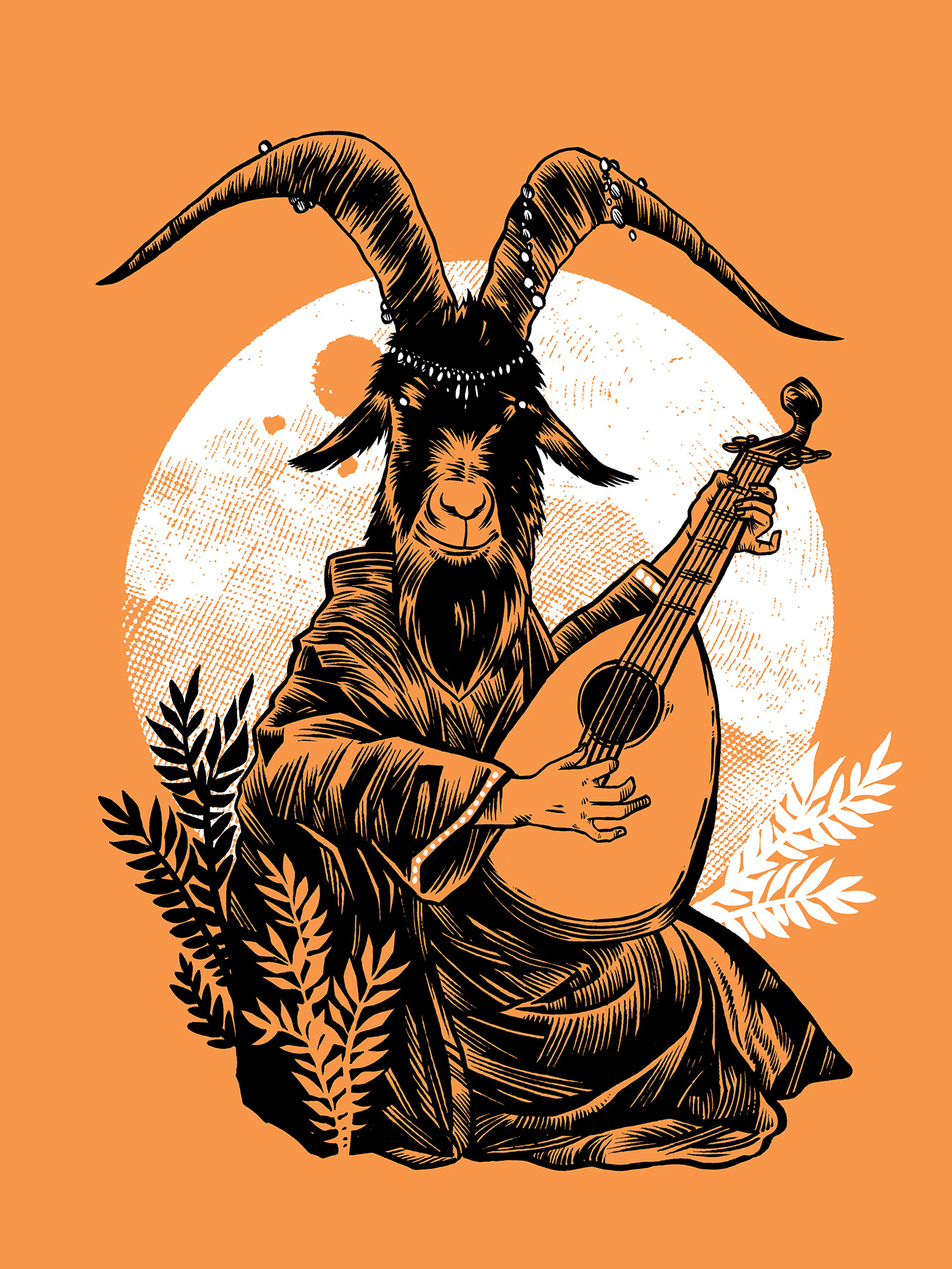 just a nice lil goat, living deliciously 9 x 12 two color screenprint on orange paper