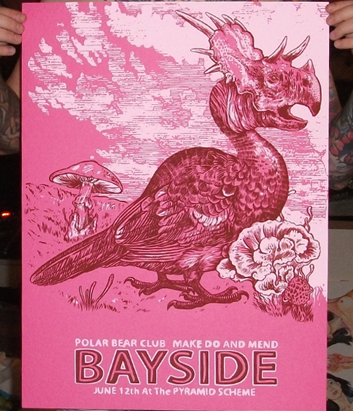 18 x 24 two color poster for Bayside, Polar Bear Club, and Make do and Mend printed by Progress of Design on Mr.French pop-tone razzleberry paper