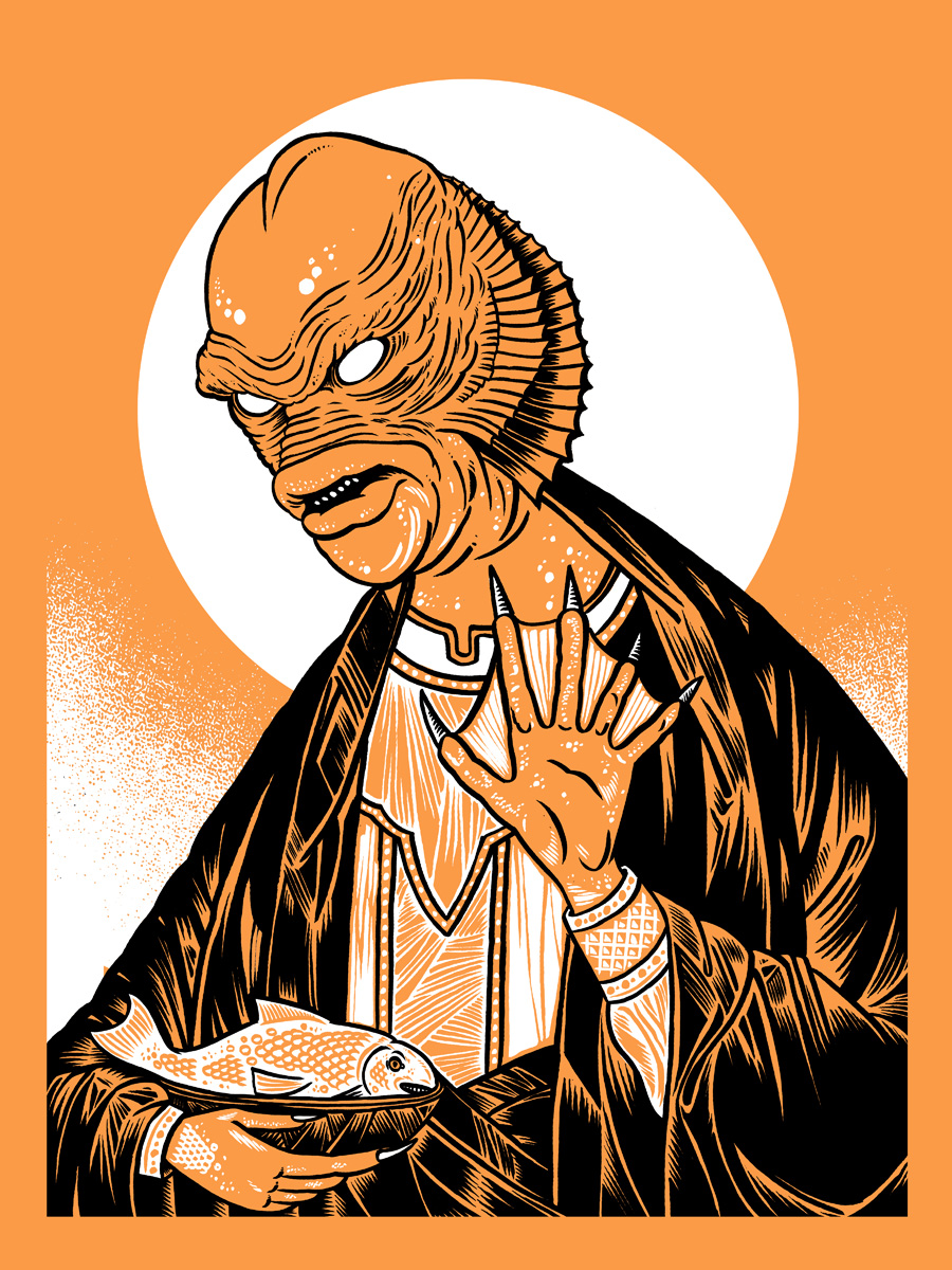 9 x 12 seasonal screen print. 2 colors, black and white on orange fizz french paper.