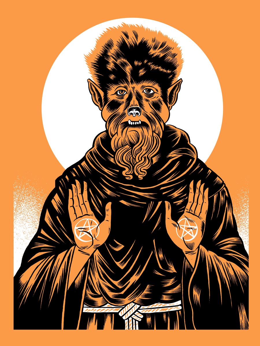 9 x 12 seasonal screen print. 2 colors, black and white on orange fizz french paper.
