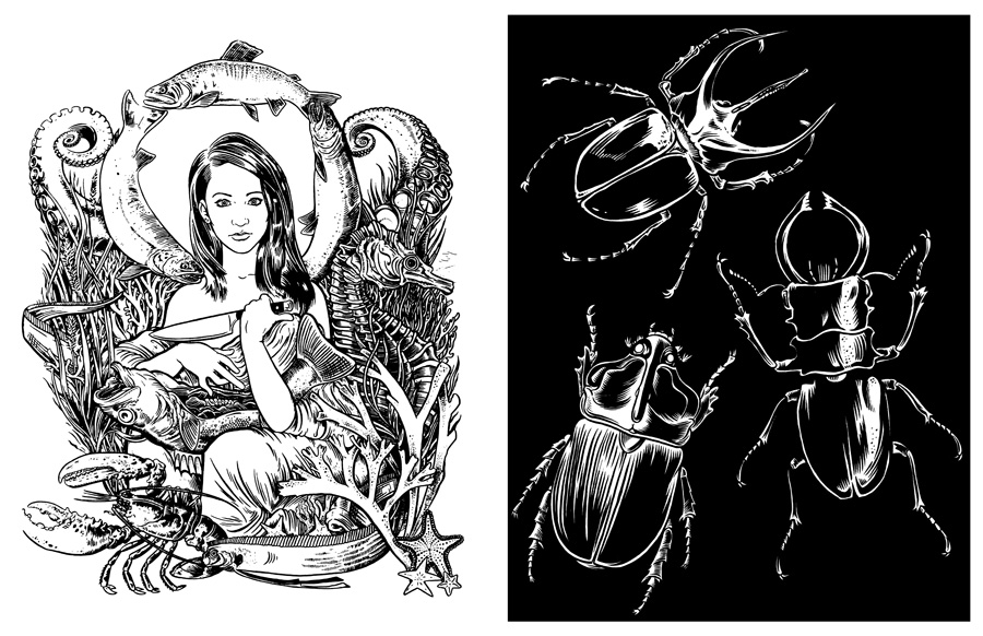 126 page book featuring illustrations, sketches, posters, and design-work. Mostly illustrations of girls, cats, Abe Lincoln, Whiskey, and things with too many eyes. 100 black and white pages and 26 color. 8.5x11 perfect bound soft cover.