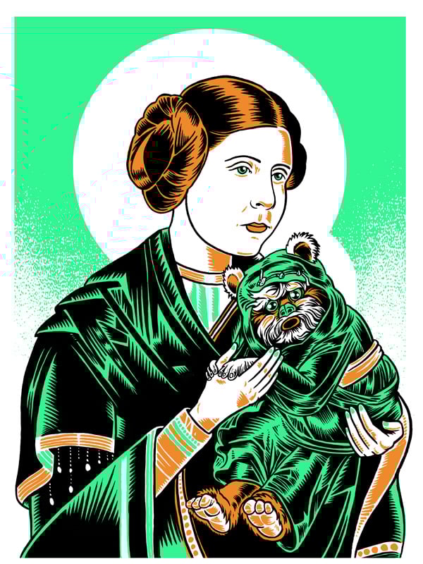 9x12 three color screenprint depicting the holy princess and the sacred ewok