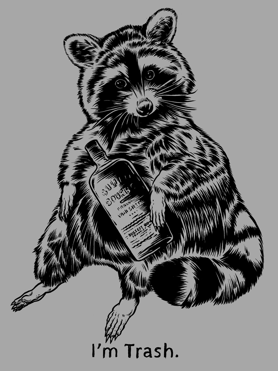3/4 sleeve raglan baseball tees featuring my whiskey raccoon drawing.