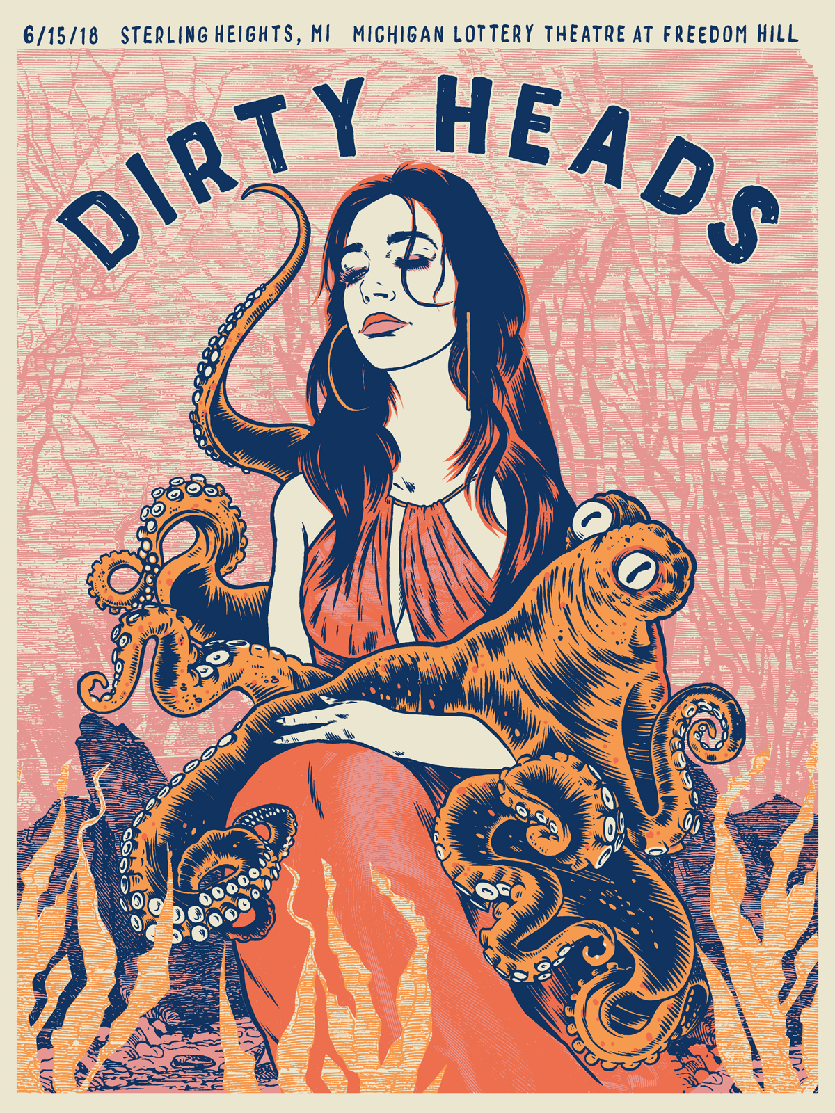 limited run three color 18x24 screenprinted poster for the Dirty Heads