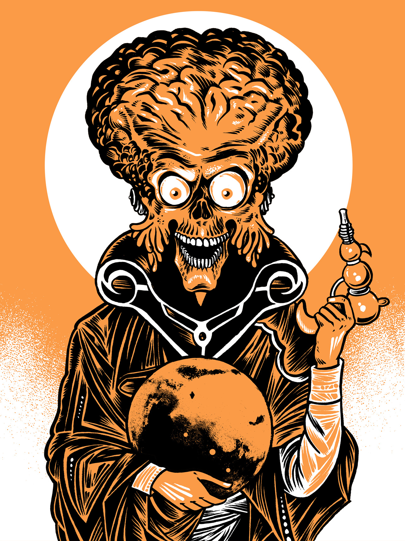 Saint Martian- patron saint of Ack Ack Ack. 9x12 2 color screen print depicting a character from Mars Attacks in the style of orthodox saint iconography.